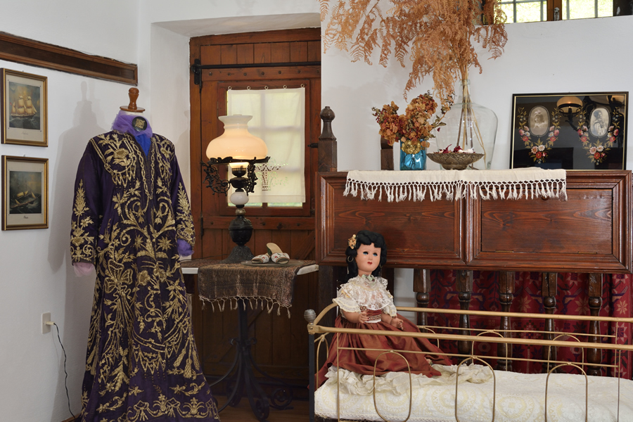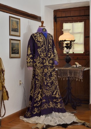 The bridal velvet robe, coming from the Middle-east, all embroidered with gold thread, it was a gift to the great grandfather of the owner Maria Diamond, when he was teaching in Maditos.