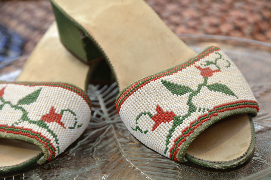 Another pair of sleepers, embroidered with s beads! They were the Sunday sleepers of the lady of the house, placed with respect on the marble table with a big lamp and the silk brocade cover, bringing memories and a touch of the far-east.