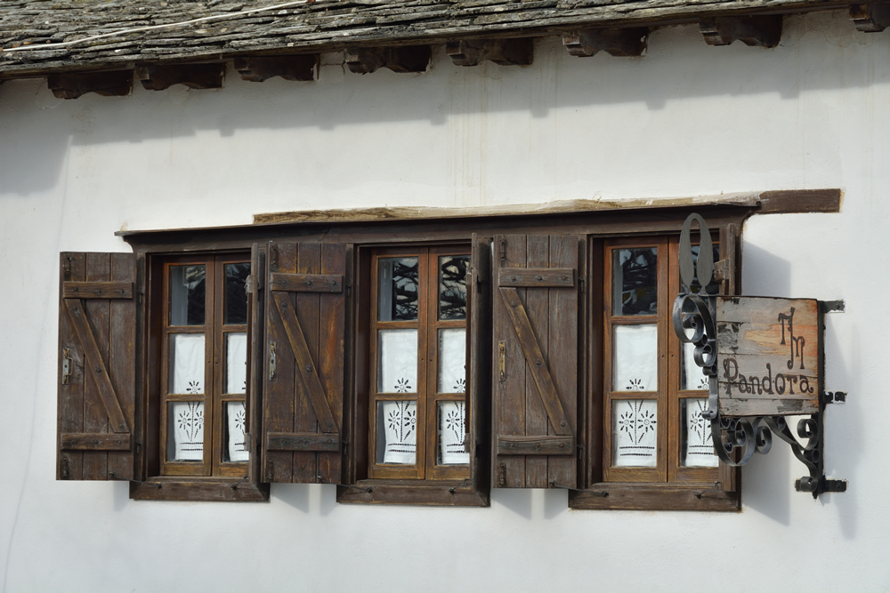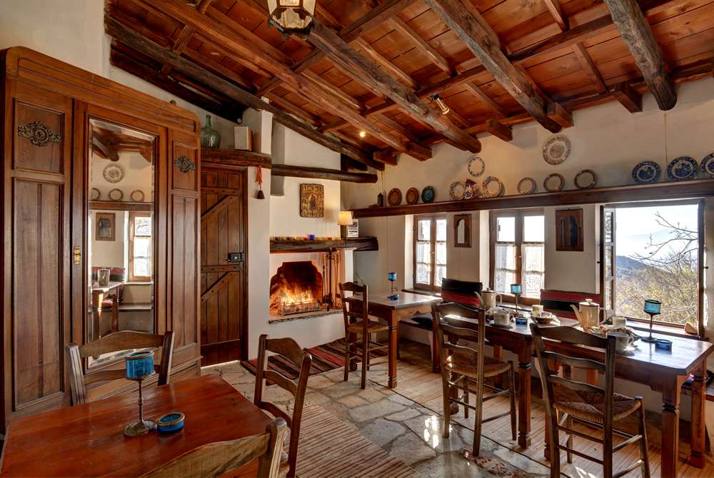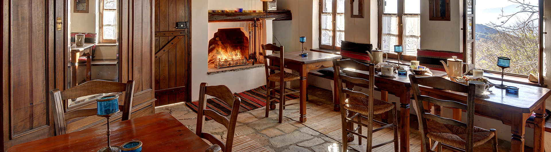 | The embroidered traditional curtains the dart of the loom, the traditionally made ceiling, create a space full of warm and friendly atmosphere. The Ouzeri lounge, is offered only to Pandora’s guests to become a friendly group. Your feeling travels far away and your soul peacefully enjoys the quality of the interior details.  |